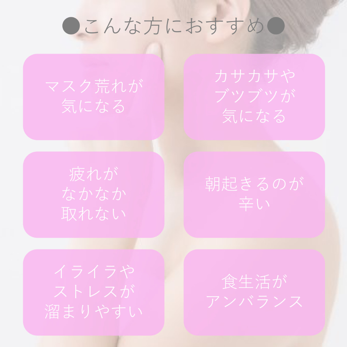 肌荒れが気になるとき、疲れが溜まっているときなどに。