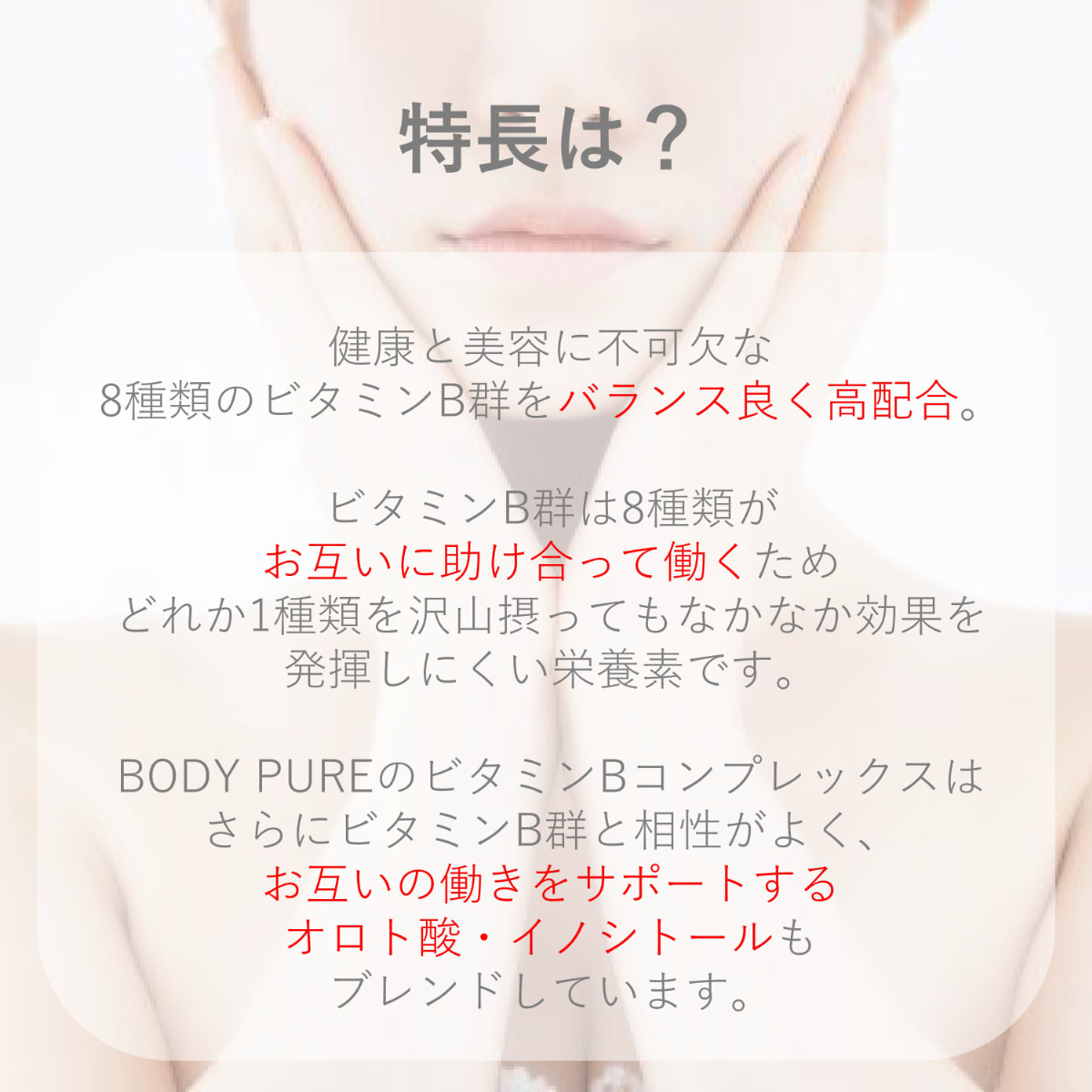 健康と美容に不可欠な8種類のビタミンB群とコリン、イノシトールをブレンド。