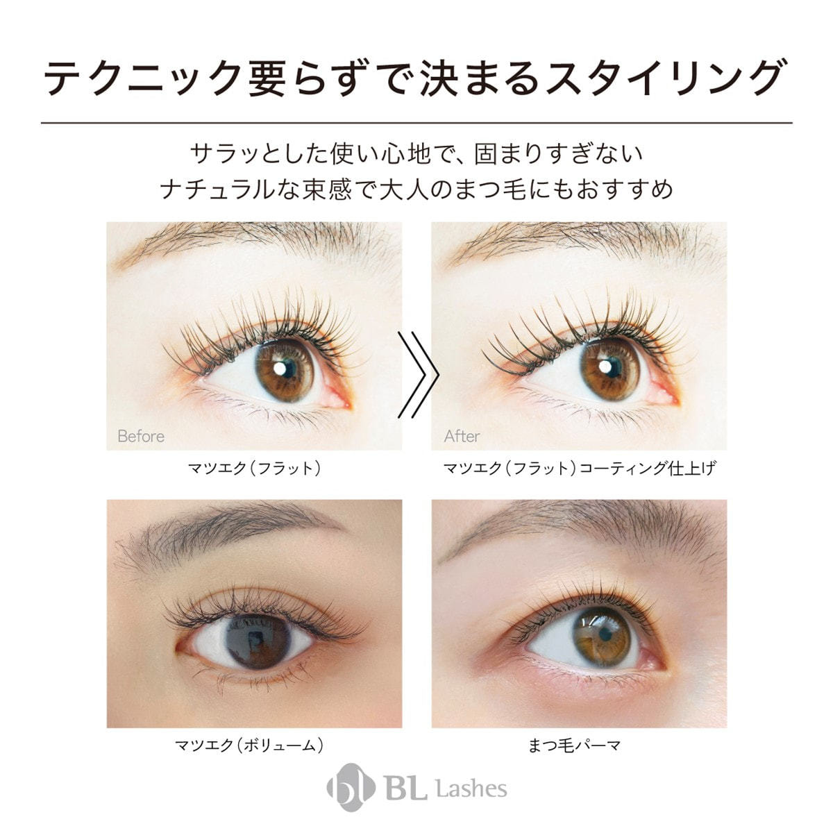 清潔なまつ毛の根本にブラシを軽く当て、毛先を持ち上げるように均一に塗って下さい。