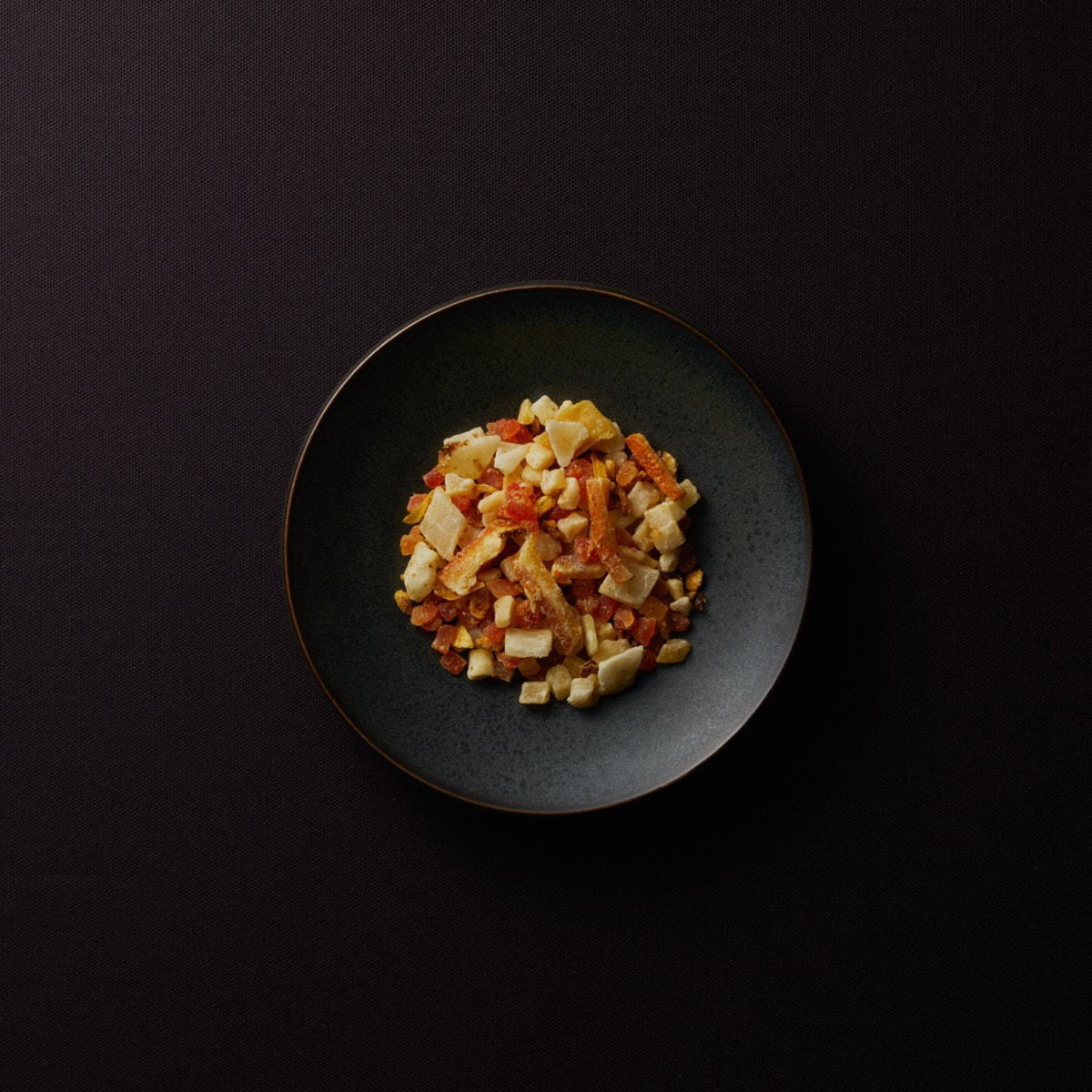 オレンジピール(トルコ)、パパイヤ、キダチアロエ、アップル、レモン、柚子、生姜、砂糖、米粉/香料、酸味料(クエン酸)、保存料(亜硫酸Na)
